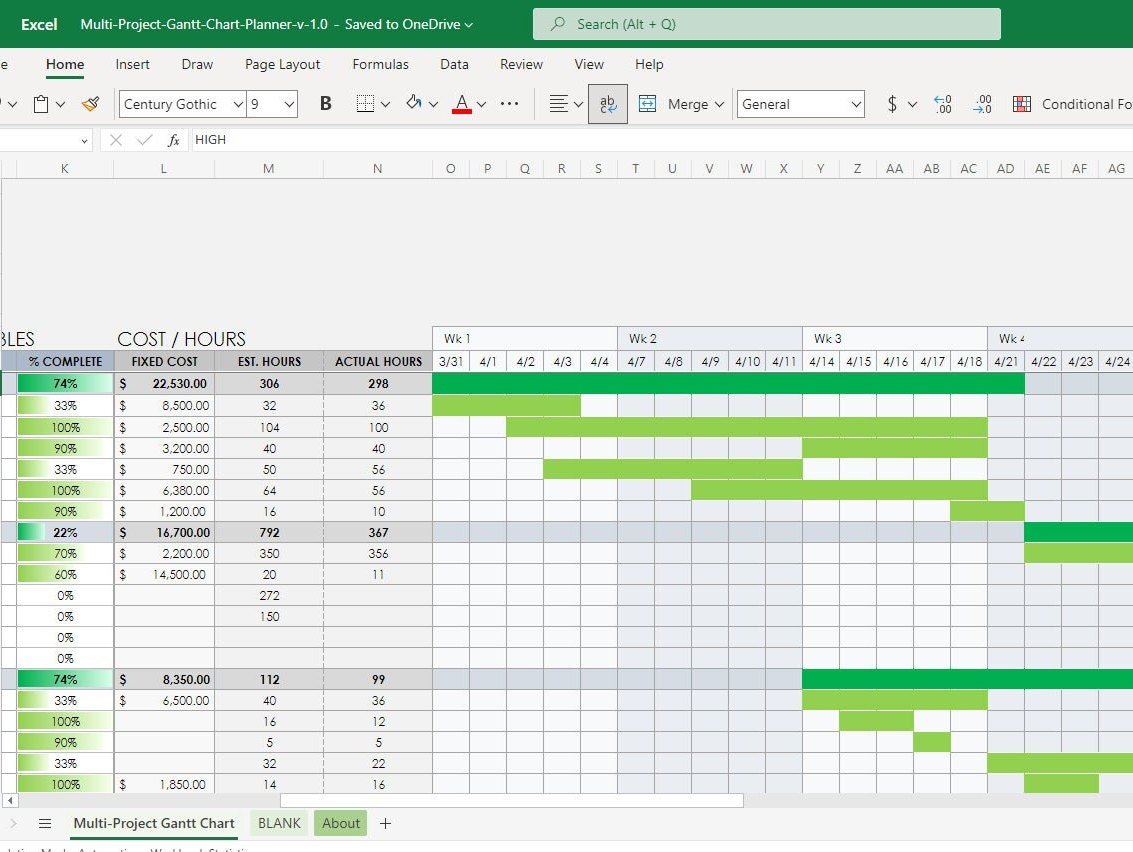 Multi Project Gantt Chart Template (Excel PowerPoint) Highfile