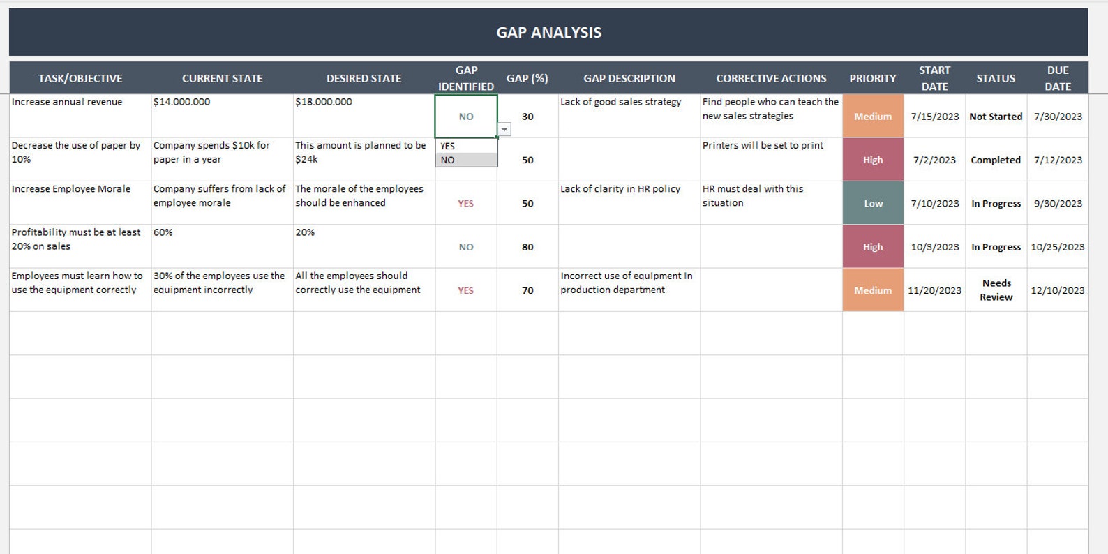 GAP Analysis Excel Template Gap Identification Identify Gaps