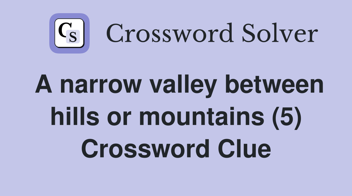 A narrow valley between hills or mountains (5) Crossword Clue Answers