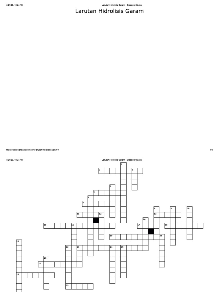 Larutan Hidrolisis Garam Crossword Labs1 PDF
