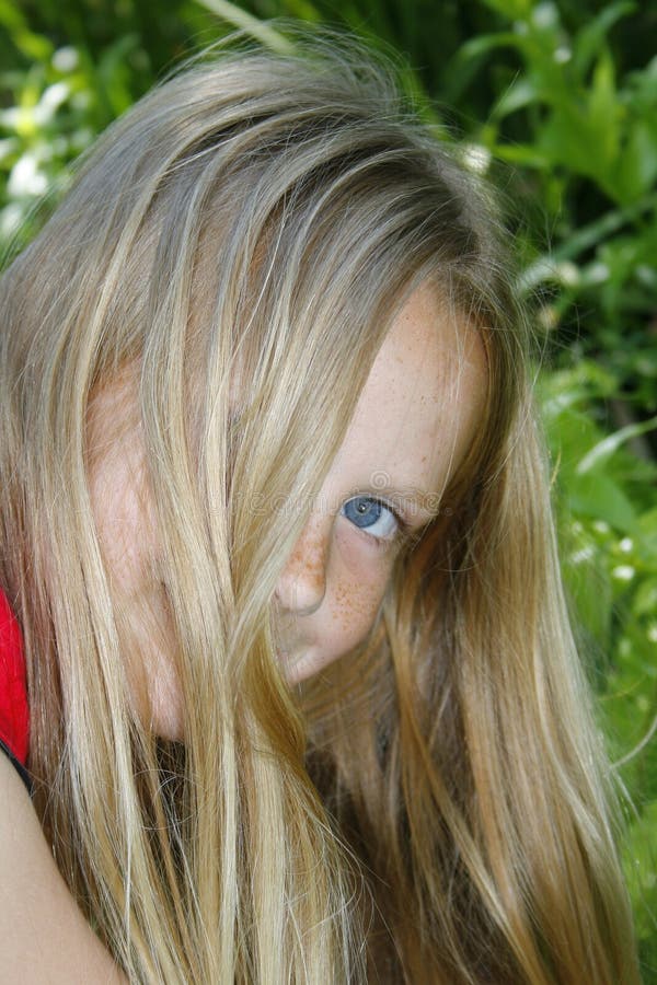 Portrait of smiling little girl in summer Stock Photo Alamy