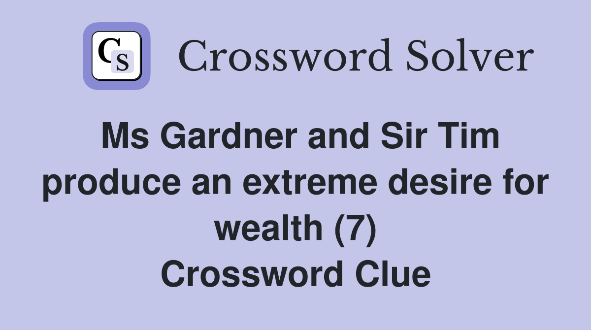 Ms Gardner and Sir Tim produce an extreme desire for wealth (7