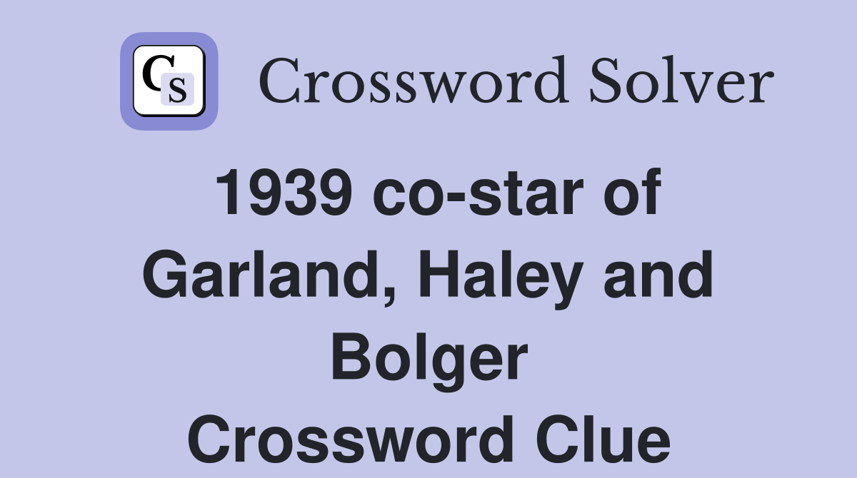 1939 co star of Garland Haley and Bolger Crossword Clue Answers