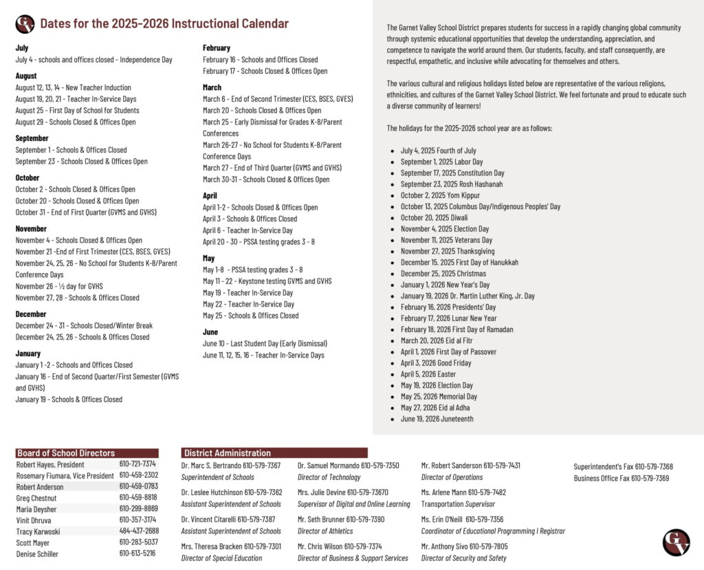 Garnet Valley School District 25 26 Calendar PDF revised EduCounty