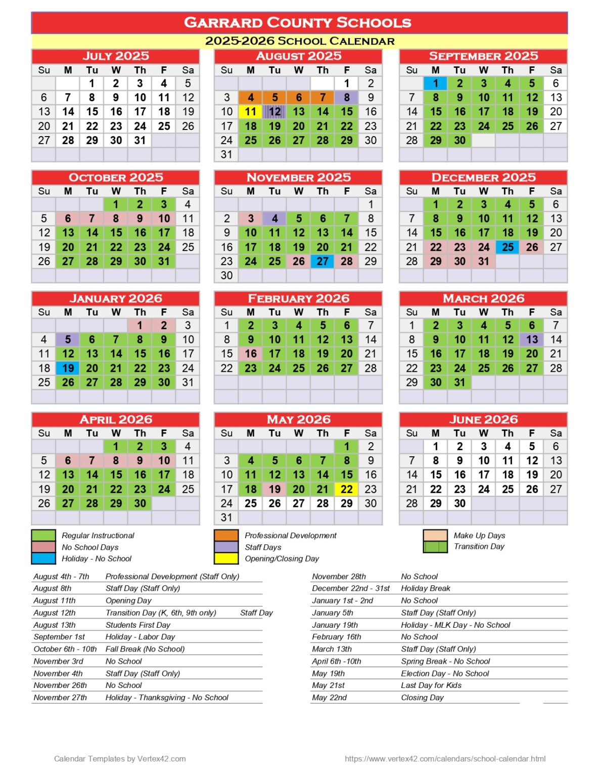 Garrard county schools ky Calendar 25 26 Revised PDF EduCounty