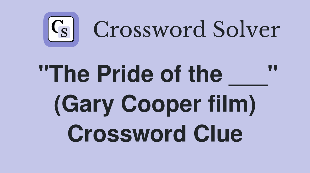 quot The Pride of the quot (Gary Cooper film) Crossword Clue Answers