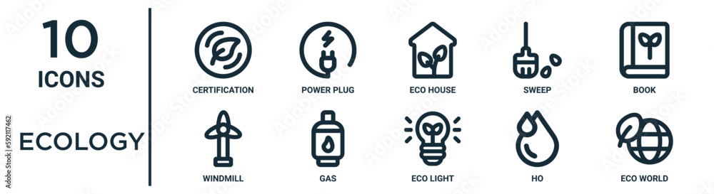 ecology outline icon set includes thin line certification eco house