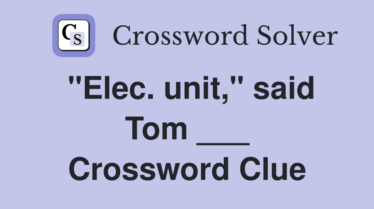quot Elec unit quot said Tom Crossword Clue Answers Crossword Solver