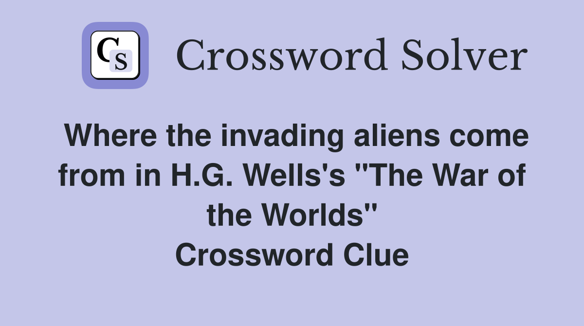 Where the invading aliens come from in H G Wells #39 s quot The War of the