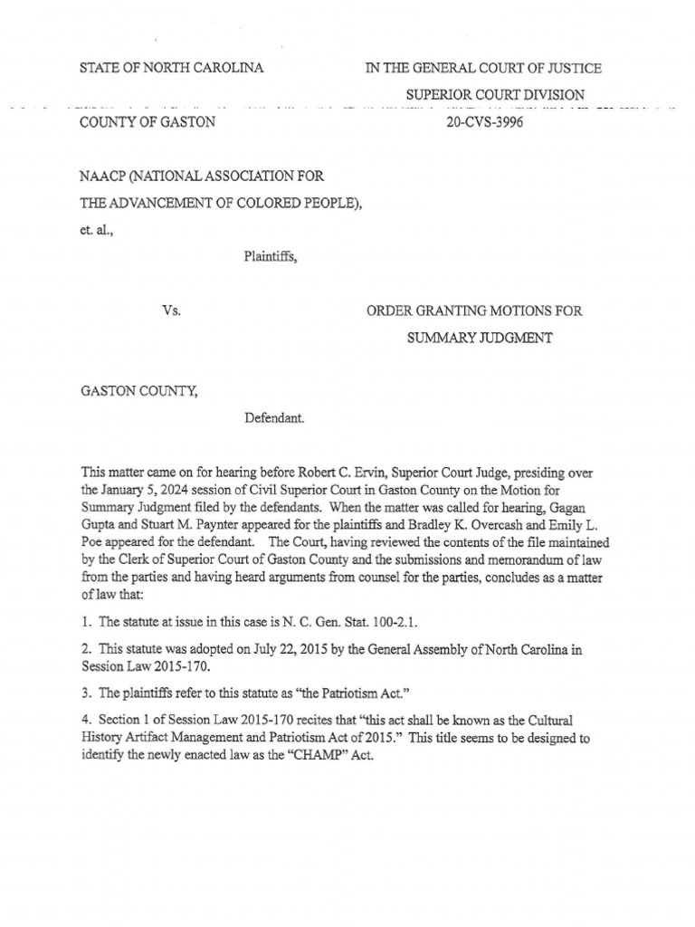 Gaston County Superior Court Ruling Regarding The Removal of A