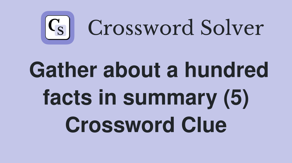 Gather about a hundred facts in summary (5) Crossword Clue Answers