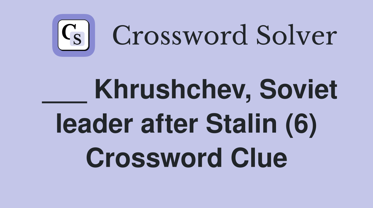 Khrushchev Soviet leader after Stalin (6) Crossword Clue Answers