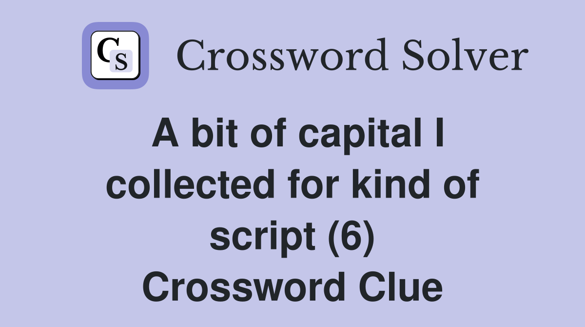 A bit of capital I collected for kind of script (6) Crossword Clue