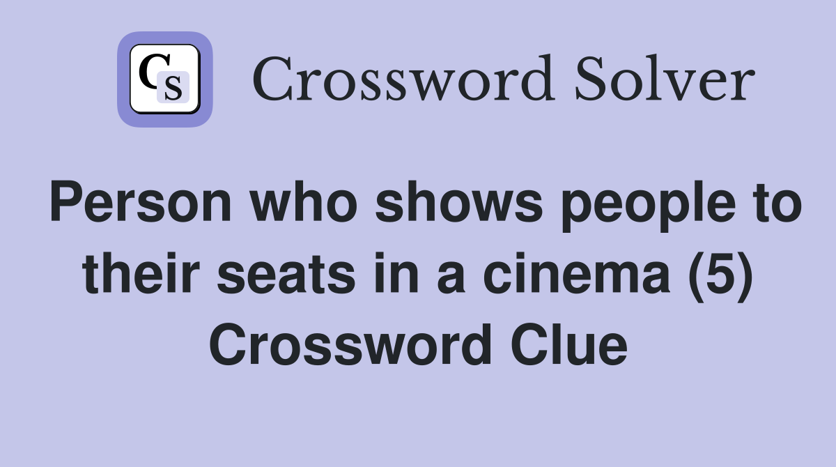 Person who shows people to their seats in a cinema (5) Crossword Clue
