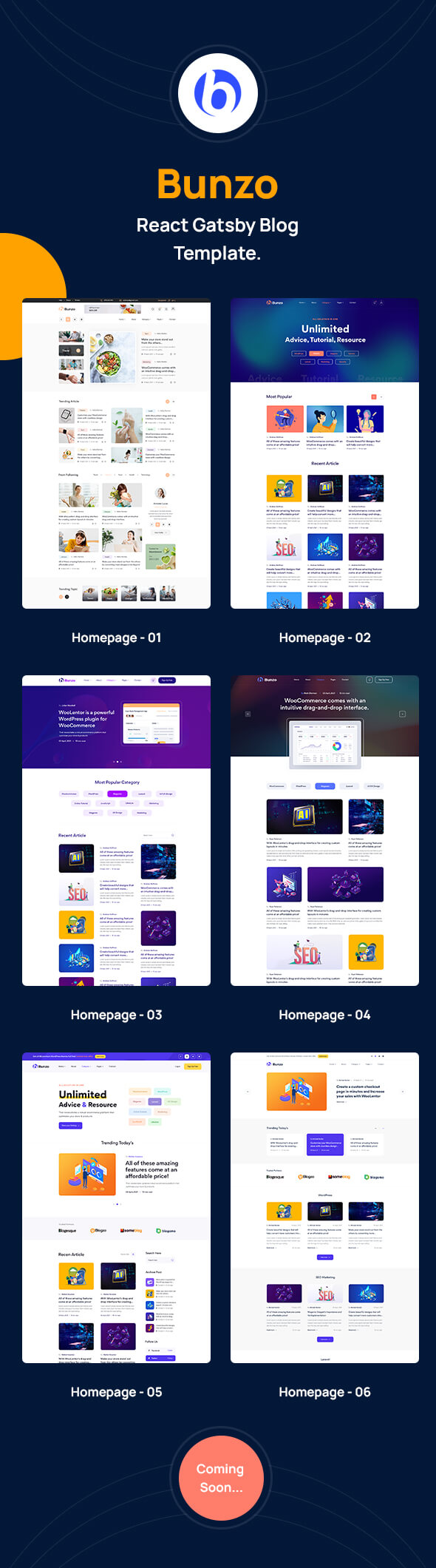 Bunzo React Gatsby Blog Template React Gatsby Blog Template is a