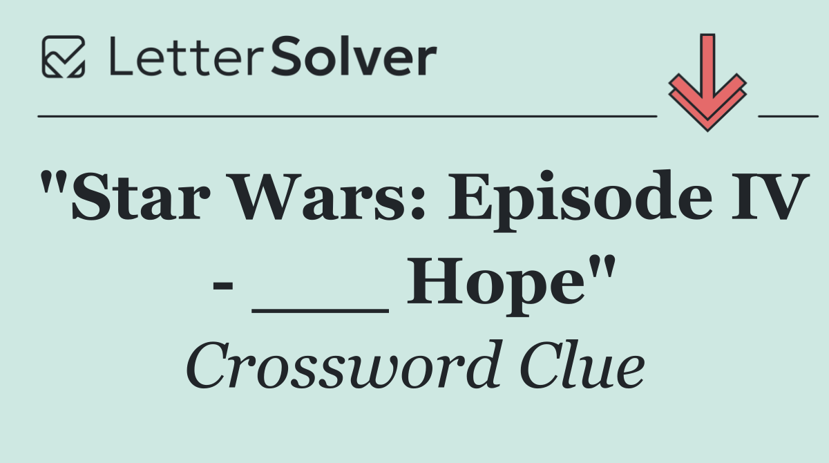 quot Star Wars: Episode IV Hope quot Crossword Clue Answers