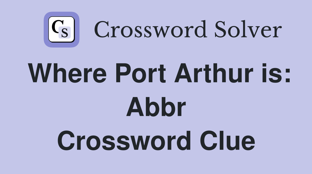 Where Port Arthur is: Abbr Crossword Clue Answers Crossword Solver