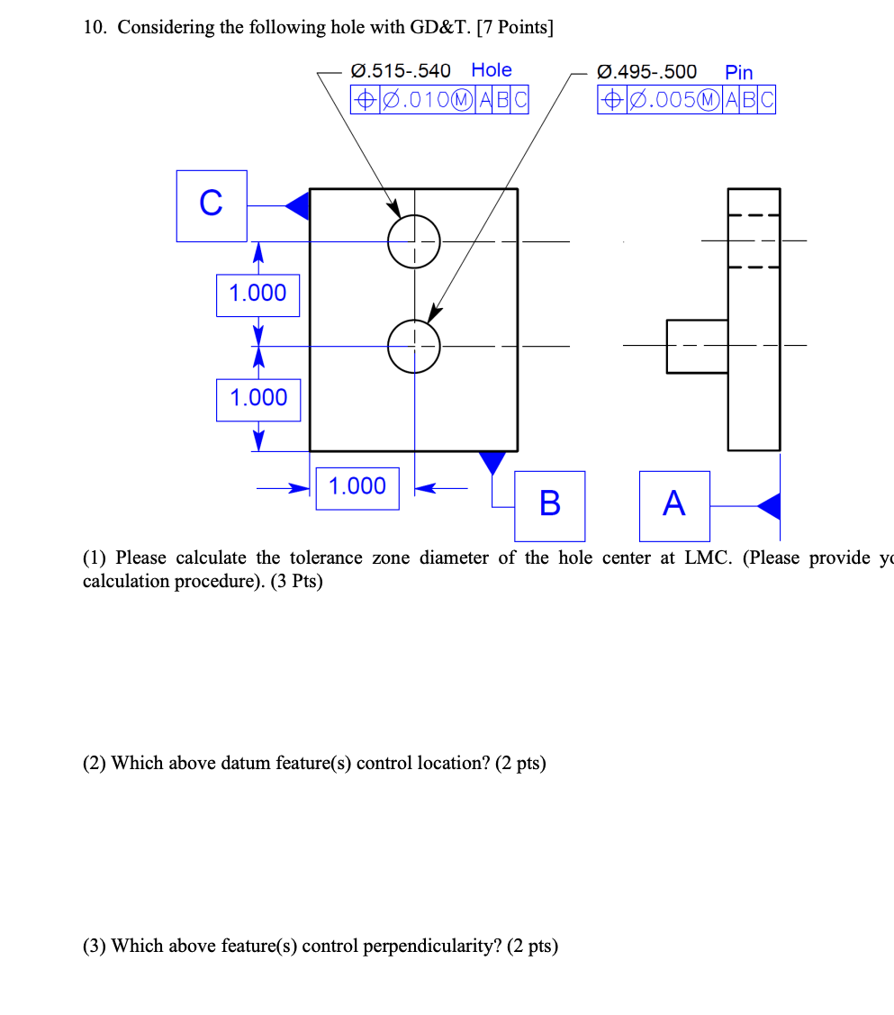 Solved 10 Considering the following hole with GD T 7 Chegg com