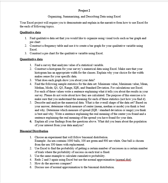 Solved Project 2 Organizing Summarizing and Describing Chegg com