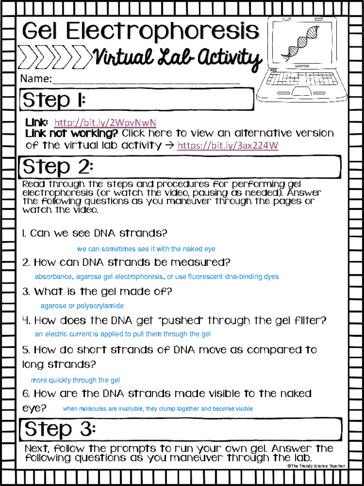 Gel Electrophoresis Virtual Lab Worksheet Answer Key Exercises