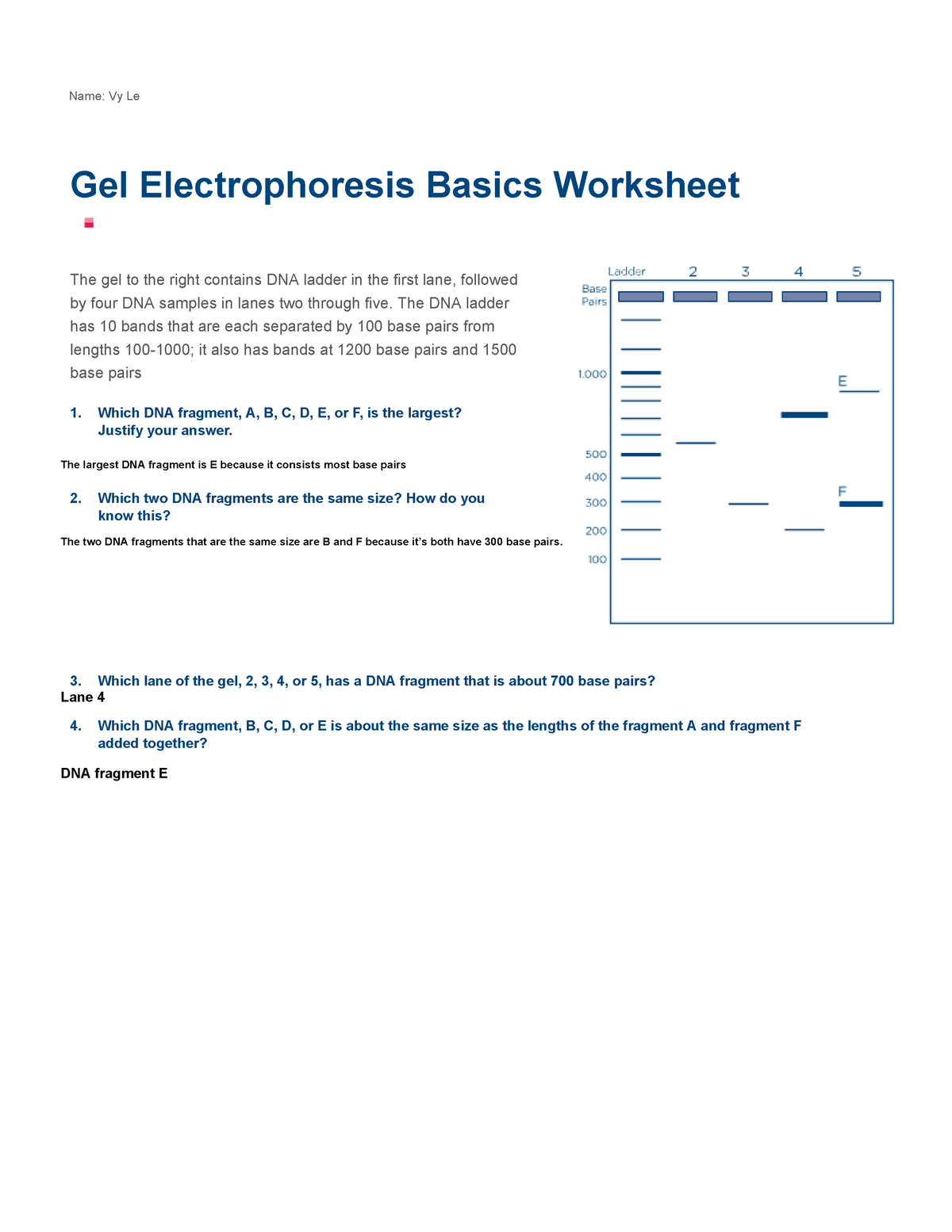 Phuong Vy Le Gel Electrophoresis Name: Vy Le Gel Worksheets