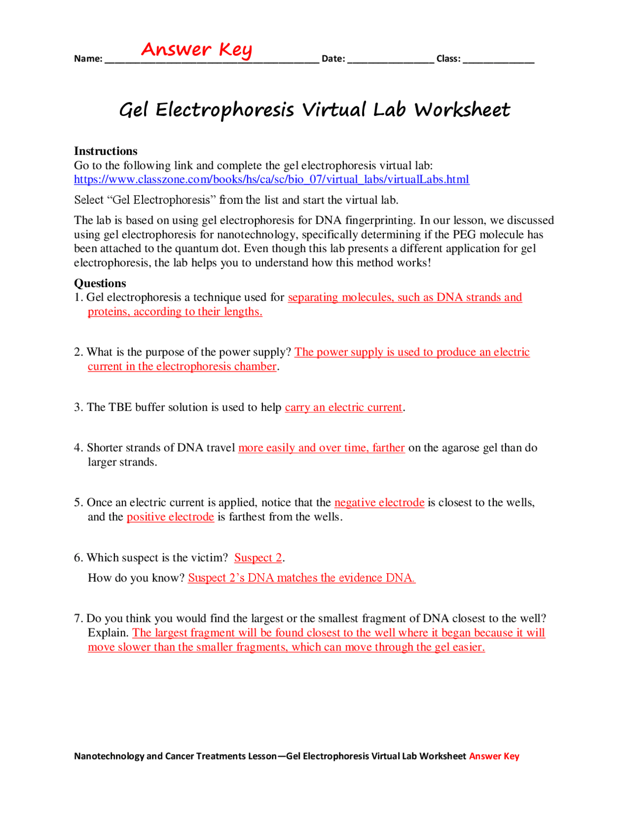 Gel Electrophoresis Virtual Lab Worksheet Answer Key