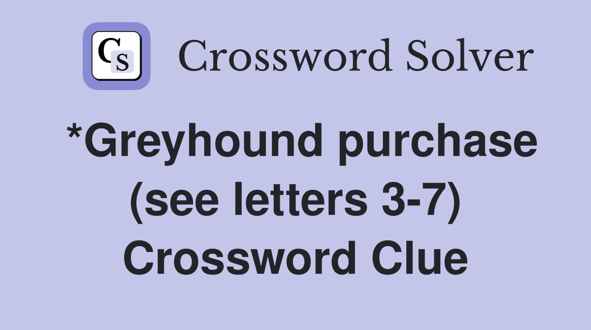 *Greyhound purchase (see letters 3 7) Crossword Clue Answers
