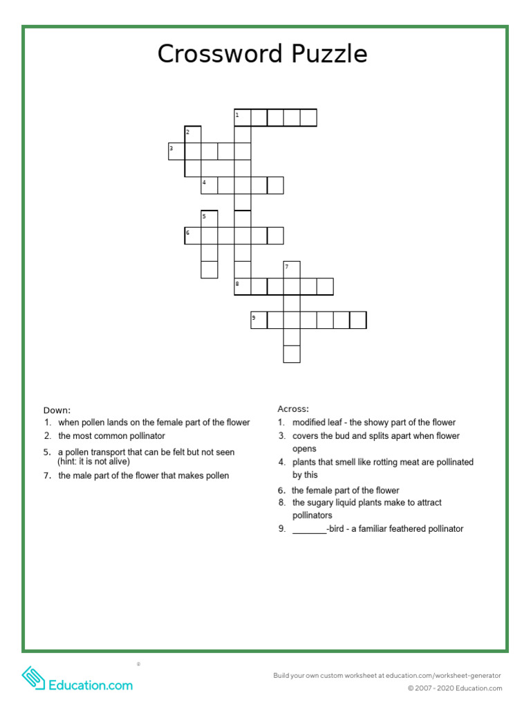 Flower themed Crossword Puzzles • Beeloo Printable Crafts and