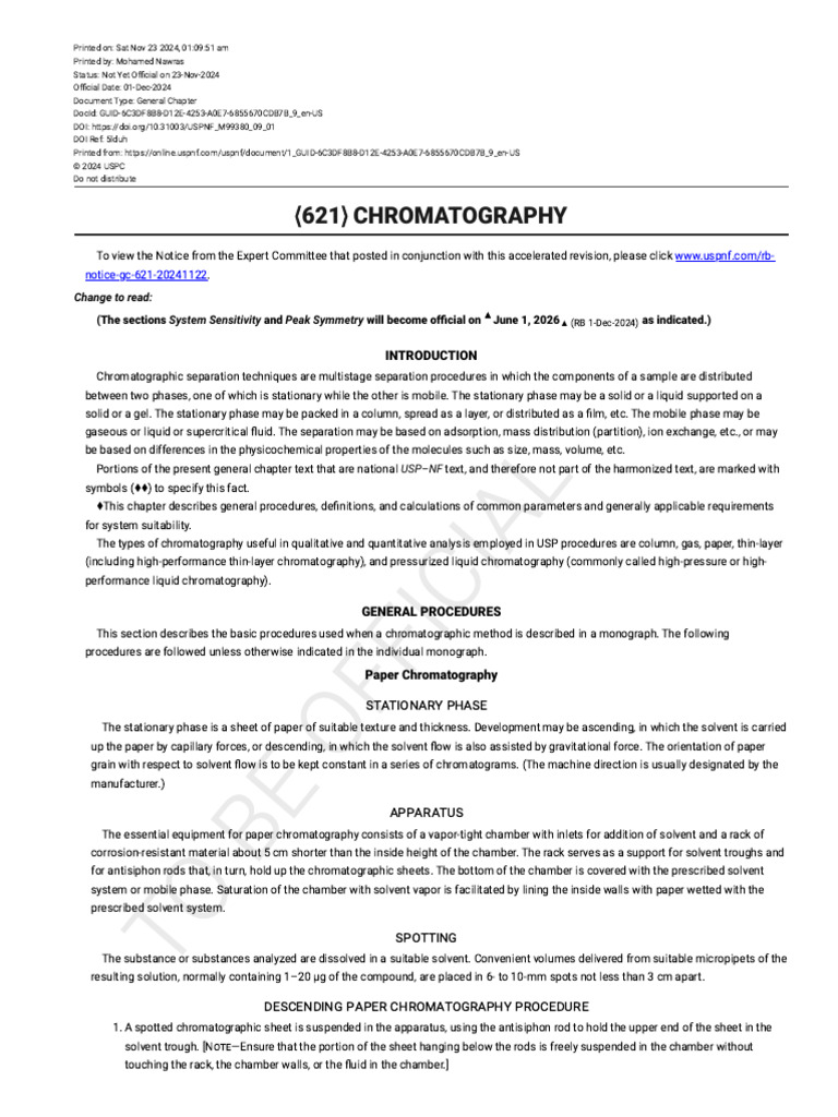 USP 621 General Chapter Chromatography PDF Chromatography Gas