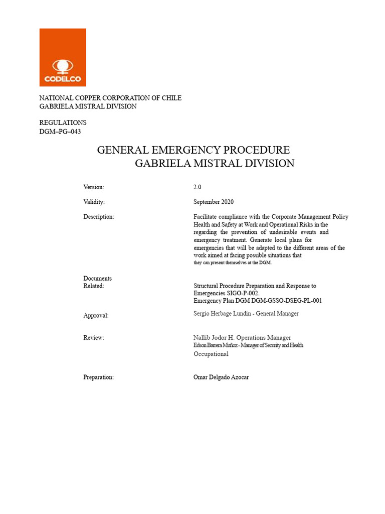 GENERAL EMERGENCY PROCEDURE GABRIELA MISTRAL DIVISION PDF Emergency