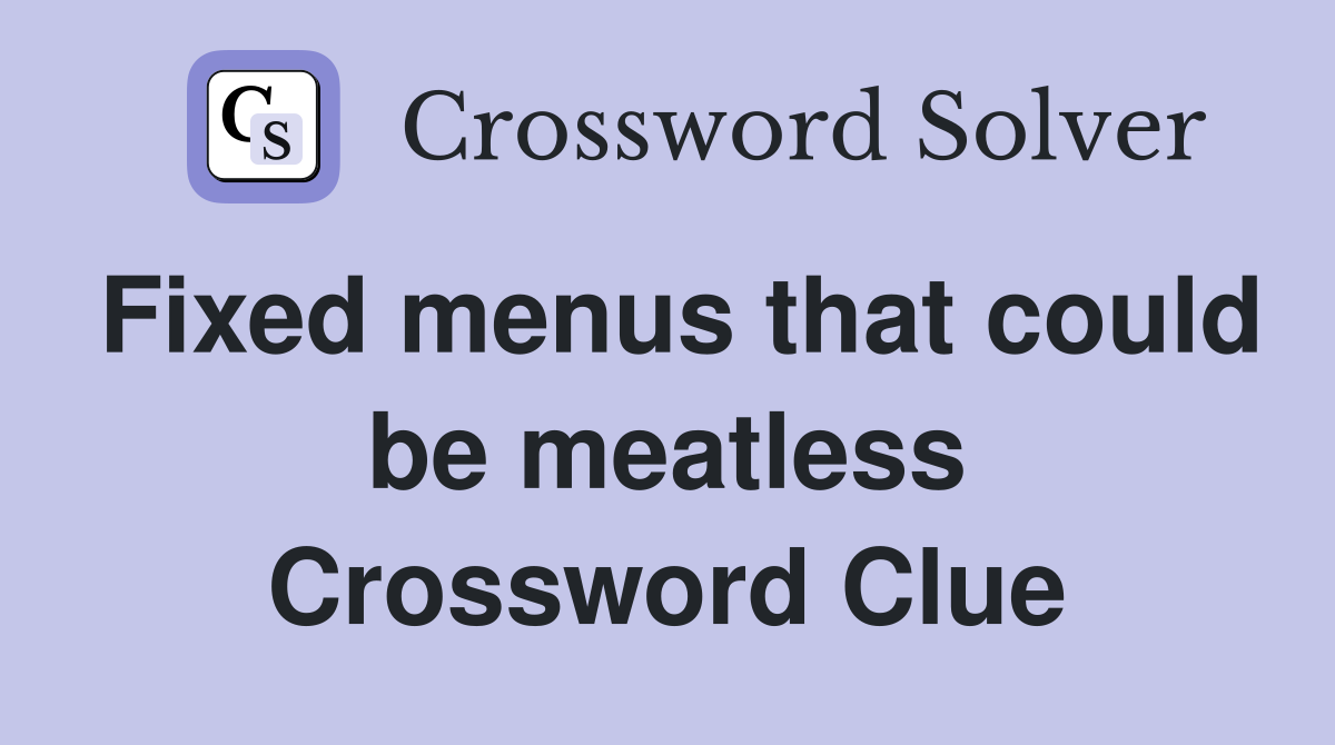 Fixed menus that could be meatless Crossword Clue Answers Crossword