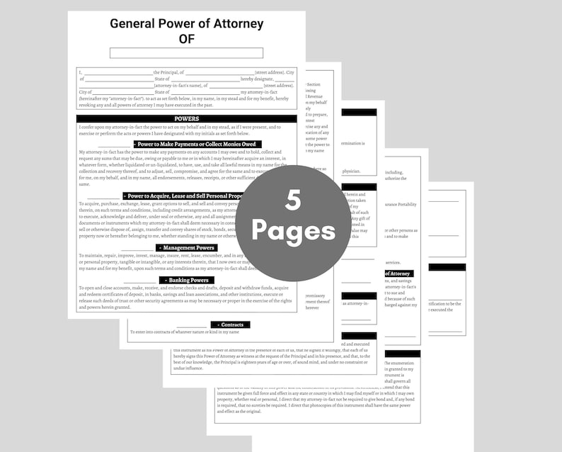 General Power of Attorney General Power of Attorney Form Etsy Canada