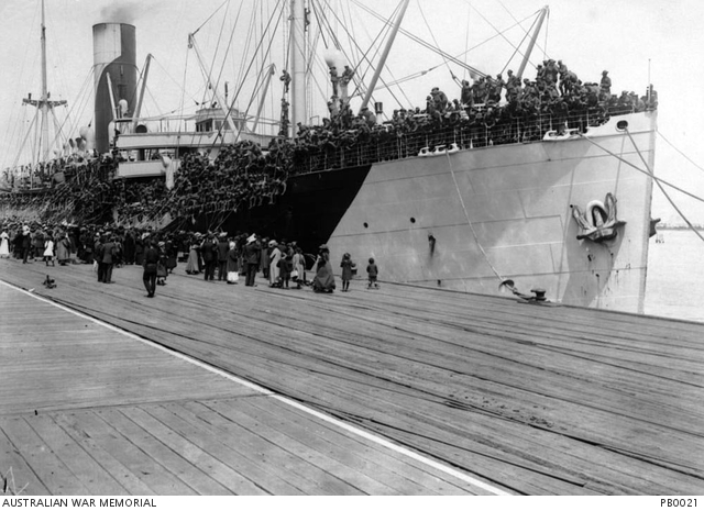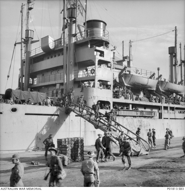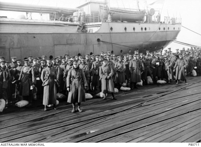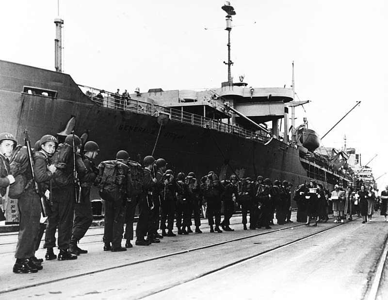 NH 119245 Sixty first infantry arriving on lighter at Brest France