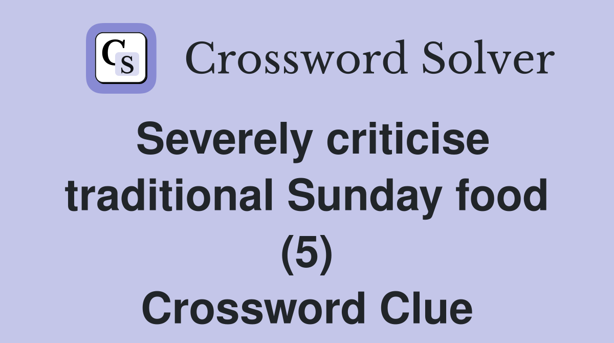 Severely criticise traditional Sunday food (5) Crossword Clue Answers