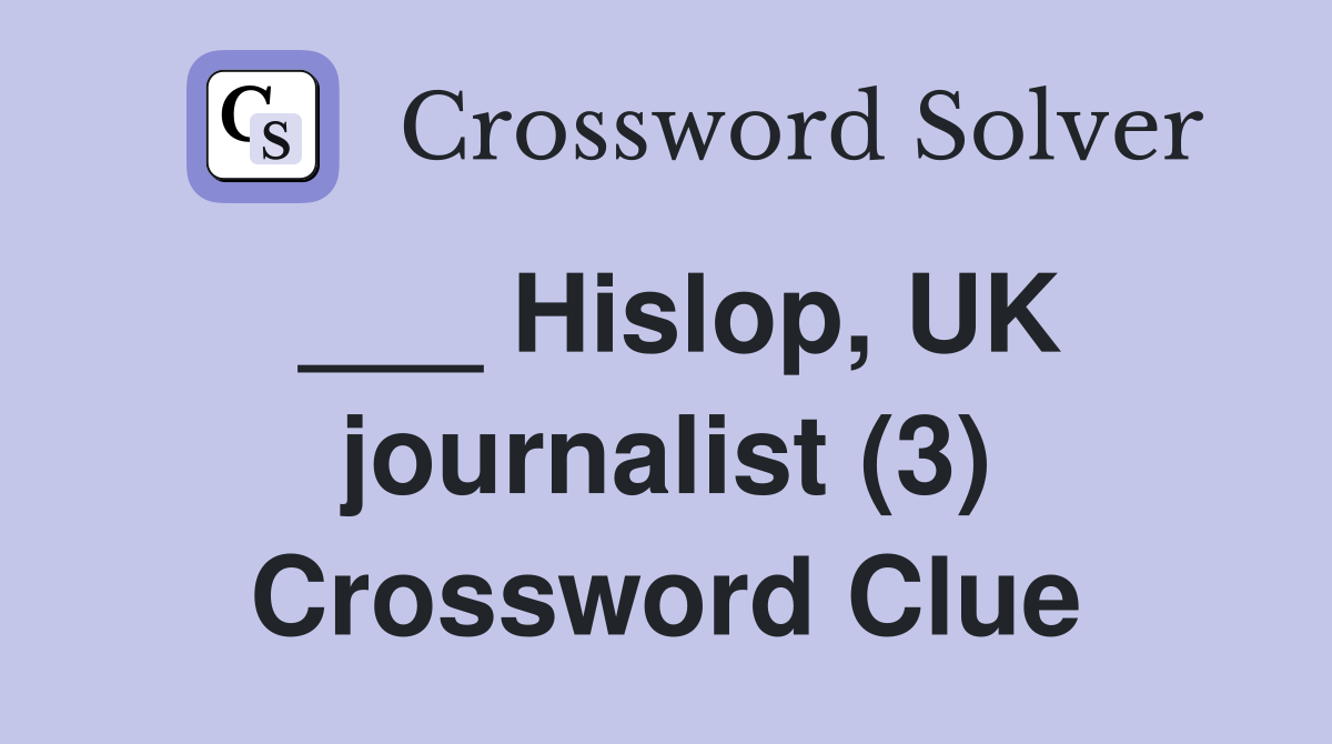 Hislop UK journalist (3) Crossword Clue Answers Crossword Solver