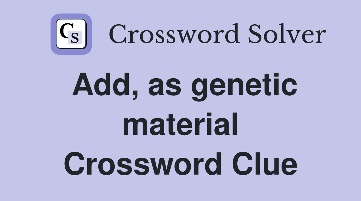 Add as genetic material Crossword Clue Answers Crossword Solver