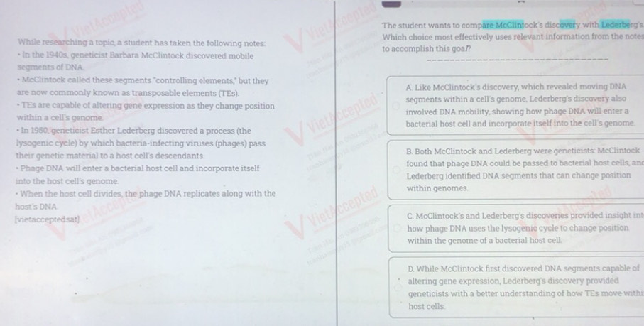 Giải quyết:The student wants to compare McClintock #39 s discovery with