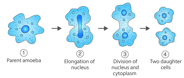 Name the process by which amoeba reproduces Draw the various stages of