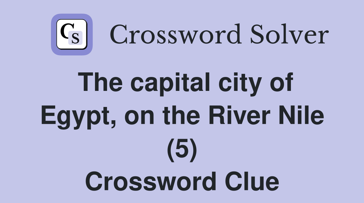 The capital city of Egypt on the River Nile (5) Crossword Clue