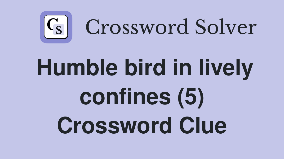 Humble bird in lively confines (5) Crossword Clue Answers Crossword