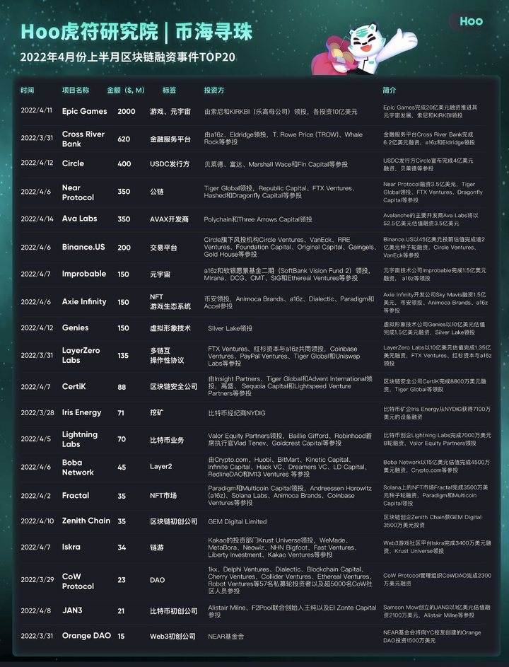虎符交易所Hoo研究院 |4月上半月区块链行业投融资TOP20 知乎