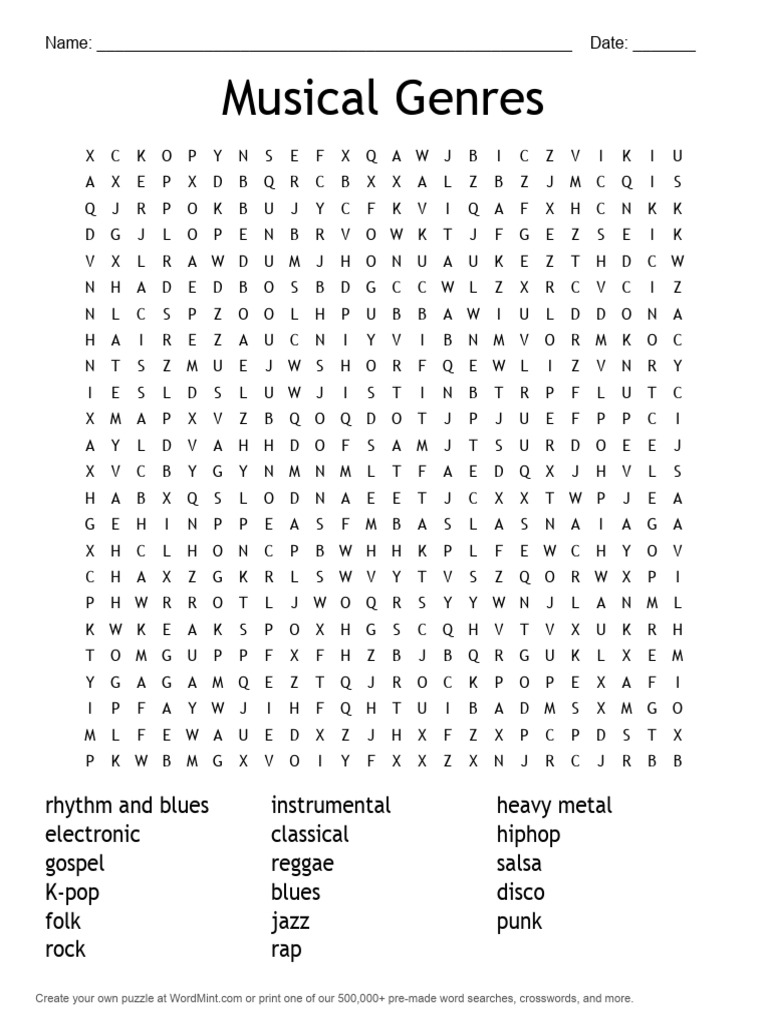 Music Genre Word Search PDF Crossword American Popular Music