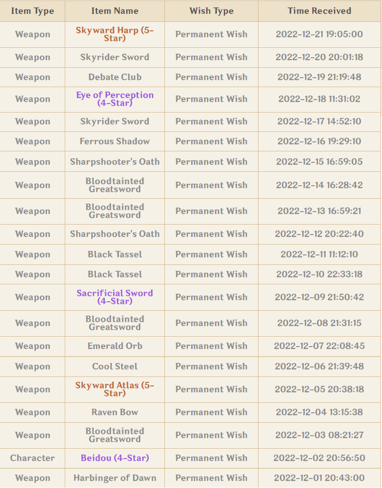 Genshin Adventskalender 2023 Übersicht