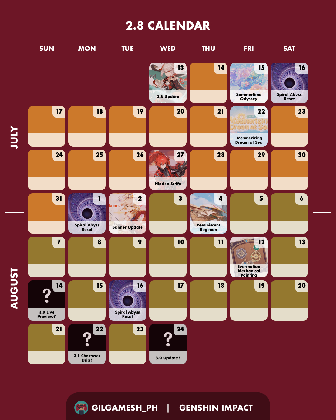 Genshin Impact Calendar Display: July : r/Genshin Impact