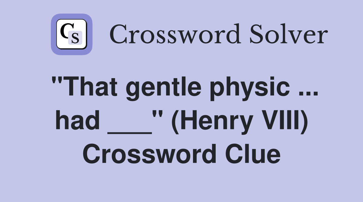 quot That gentle physic had quot (Henry VIII) Crossword Clue Answers