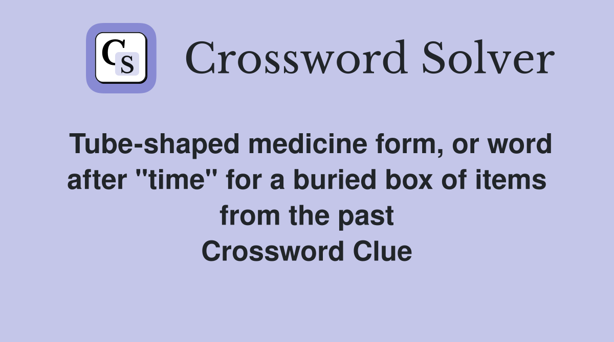Tube shaped medicine form or word after quot time quot for a buried box of