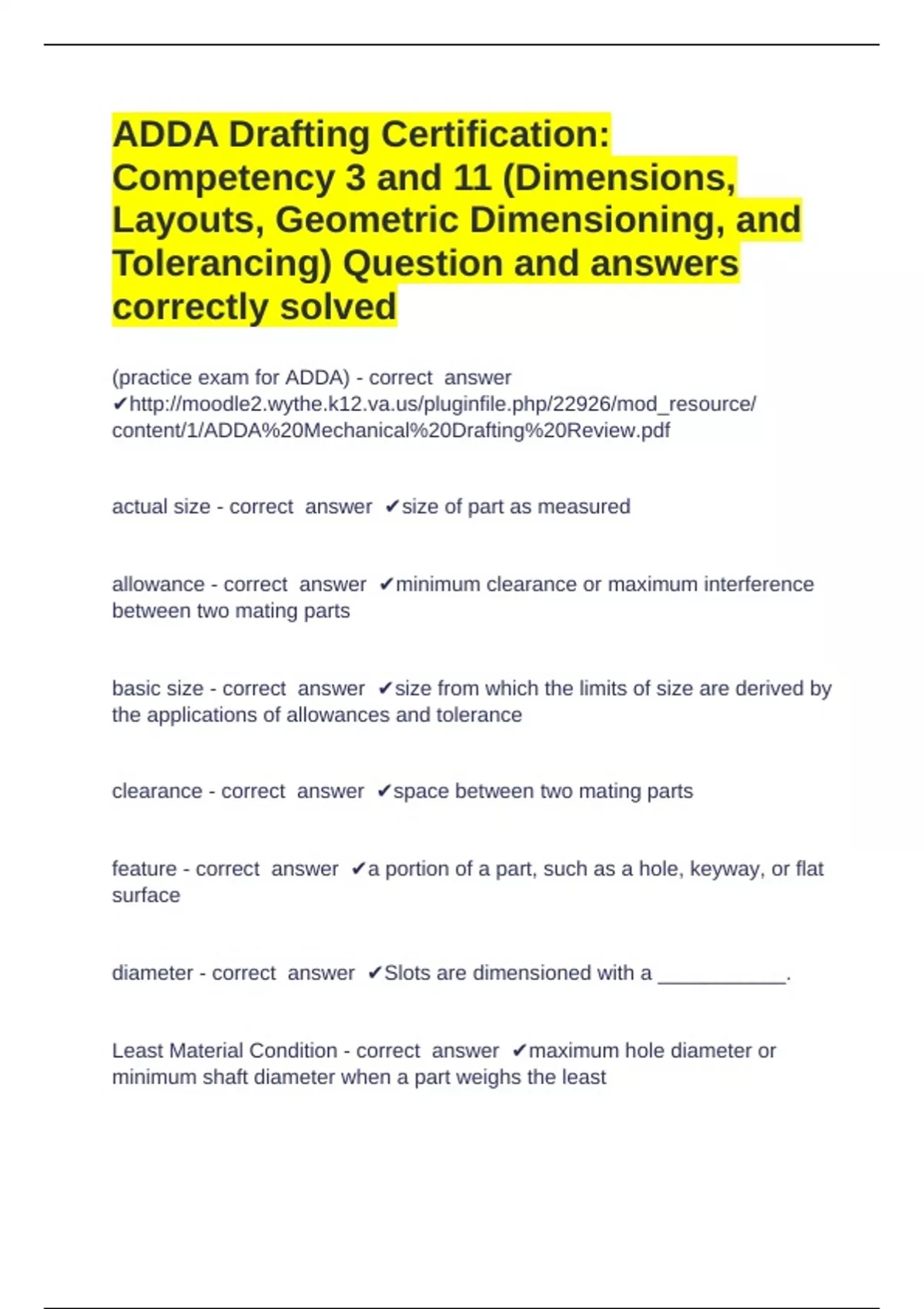 Geometric Dimensioning Tolerancing GDTP Certification Quiz 2 Comidoc
