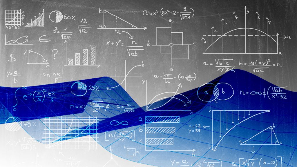 Image of Digital Screen with Scientific Data Graphs and Math Formulas