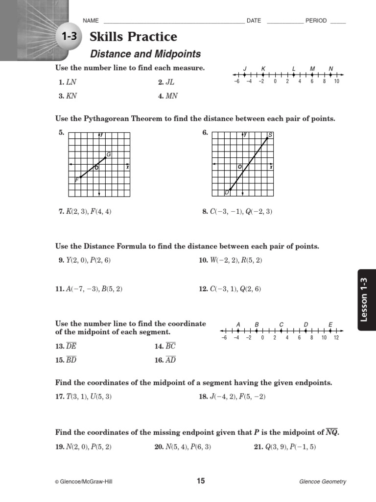 1 3 Skills Practice Distance And Midpoints Worksheet Answers