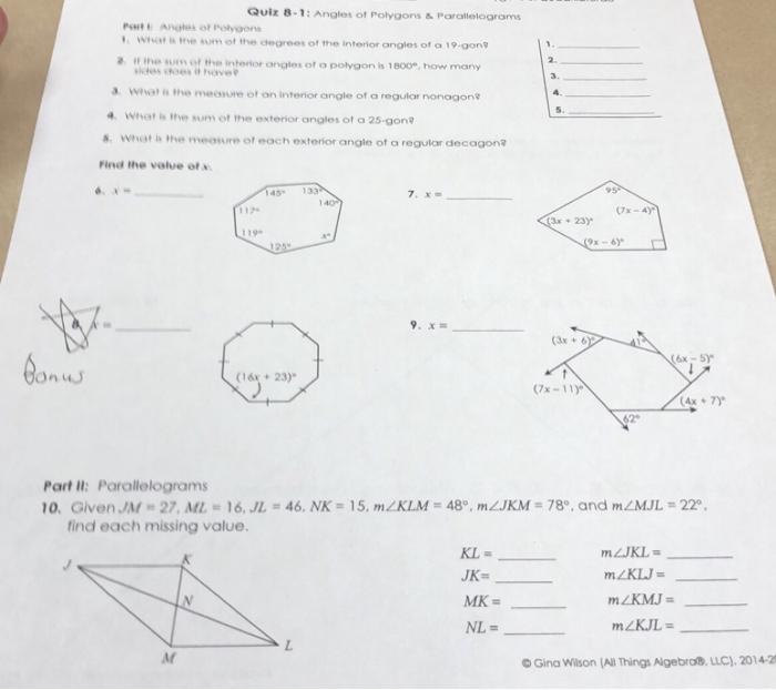 Angles Of Polygons And Parallelograms Worksheet Answers